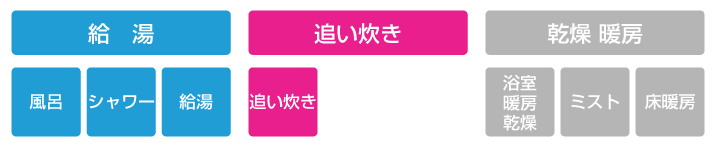 お湯をわかす追い炊き機能の他に給湯も付いたタイプなので家中でお湯が使えます